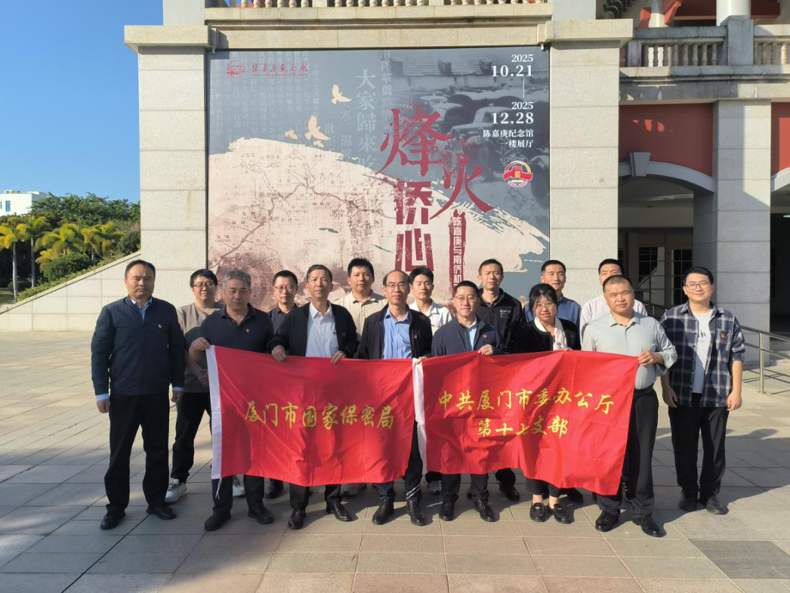 今年是中国人民抗日战争暨世界反法西斯战争胜利80周年。为深入弘扬抗战精神,传承红色基因,进一步筑牢机要保密人绝对忠诚的政治底色。近日,厦门市委机要保密局党支部组织党员干部赴集美陈嘉庚纪念馆参观“烽火侨心”主题展览,让全体党员接受了一次深刻的精神洗礼和思想淬炼。