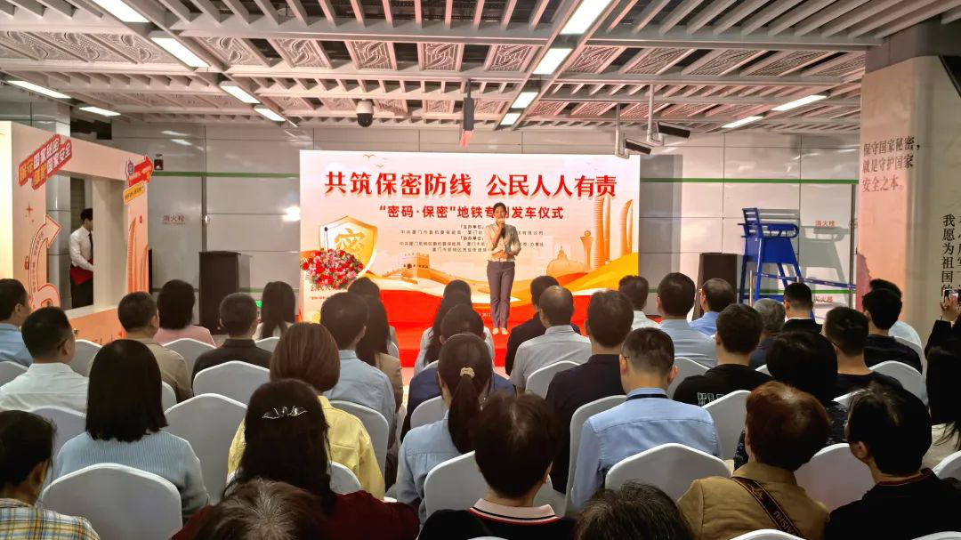 厦门“密码·保密”地铁专列宣传活动今日在地铁2号线正式启动。此次活动由中共厦门市委机要保密局、厦门轨道建设发展集团有限公司联合主办;中共厦门市思明区委机要保密局,思明区筼筜街道党工委、办事处,思明区筼筜街道振兴社区党委协办。活动通过主题列车、多媒体展播等形式,将地铁空间转化为国家安全教育阵地,推动全民保密意识提升。