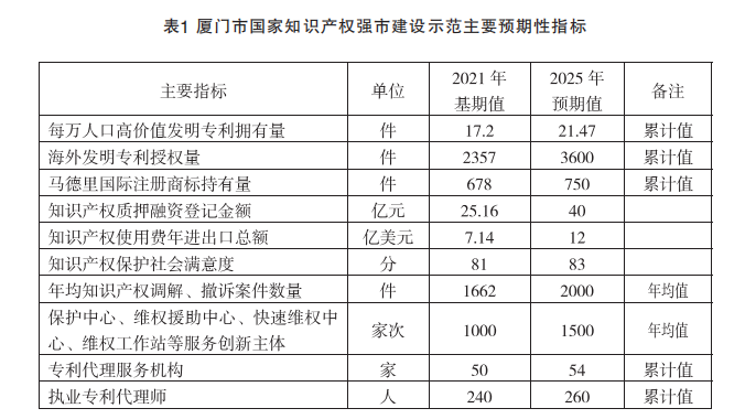 厦门市国家知识产权强市建设示范城市工作方案(2022-2025年)