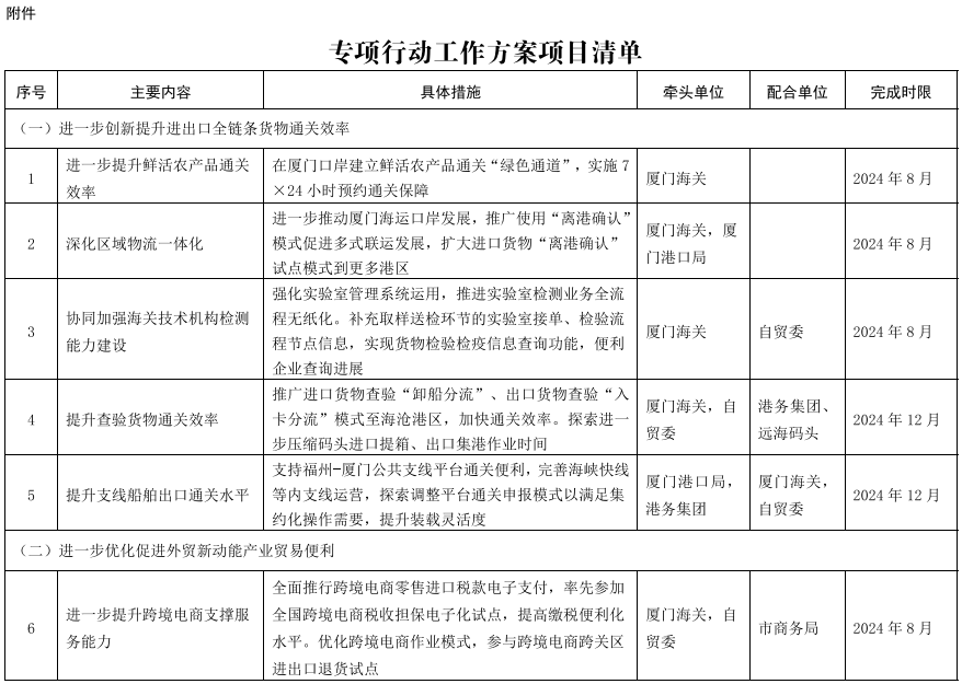 厦门市2024年促进跨境贸易便利化专项行动工作方案