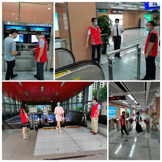 活动中,志愿者们身穿地铁志愿者服装,在工作人员的安排下,协助地铁站工作人员为乘客提供指引、咨询等帮助与服务,微笑面对乘车市民,从容有礼、热情干练,表现出了饱满的精神面貌,用志愿力量彰显爱心善意和责任担当,筑起防控的牢固“城墙”,为文明城市的创建贡献力量。
