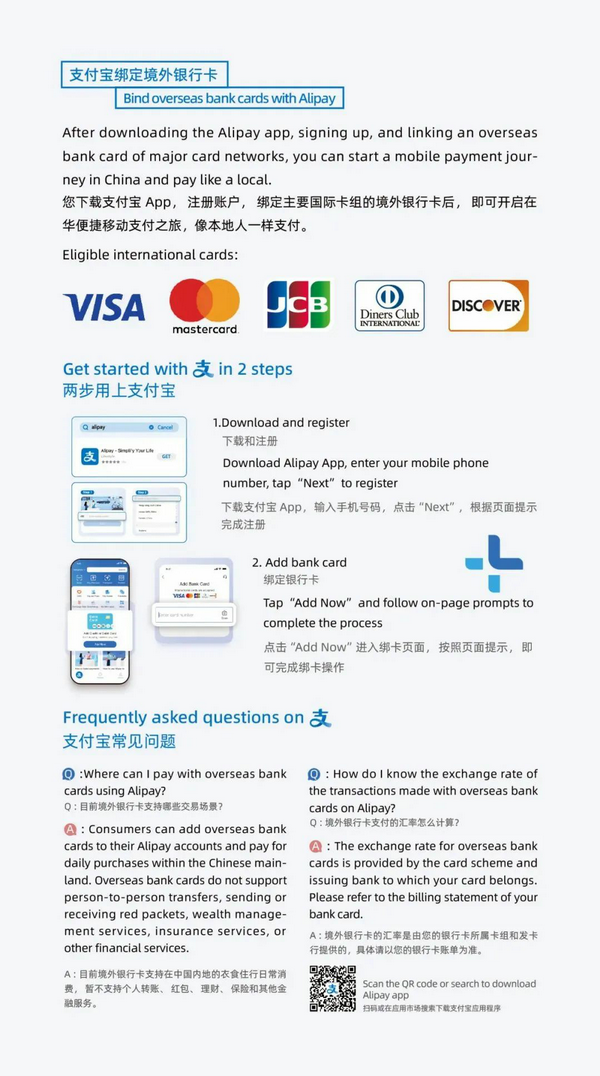 Tips:Please confirm if your bank card can be used within China. Some bank cards need to apply to the issuing bank in advance to activate cross-border transaction functions.