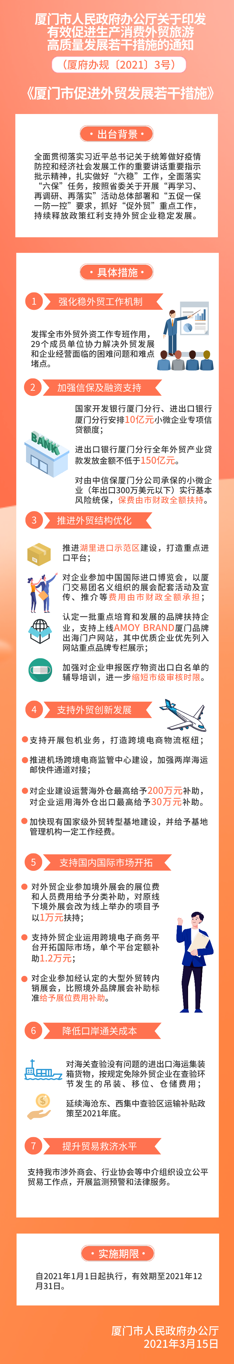 厦门市人民政府办公厅关于印发有效促进生产消费外贸旅游高质量发展若干措施的通知
